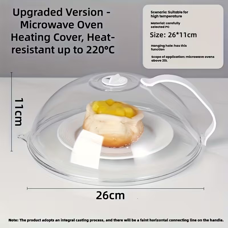 Keep your microwave spotless with our Transparent Microwave Cover. Crafted from high-quality food-grade plastic, it features an ergonomic handle and adjustable steam exhaust holes to prevent splatters while ensuring even heating. Perfect for home kitchens, dining tables, and restaurants.