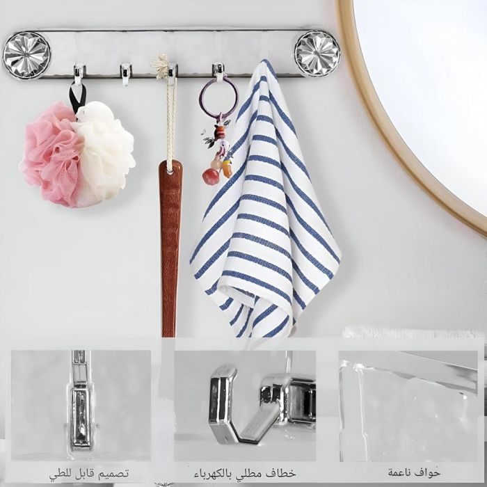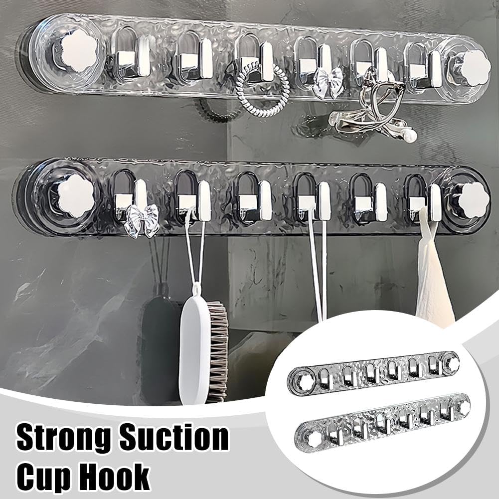 Transparent Vacuum Suction Hook Rack – 5-Hook No-Drill Organizer for Bathroom & Kitchen