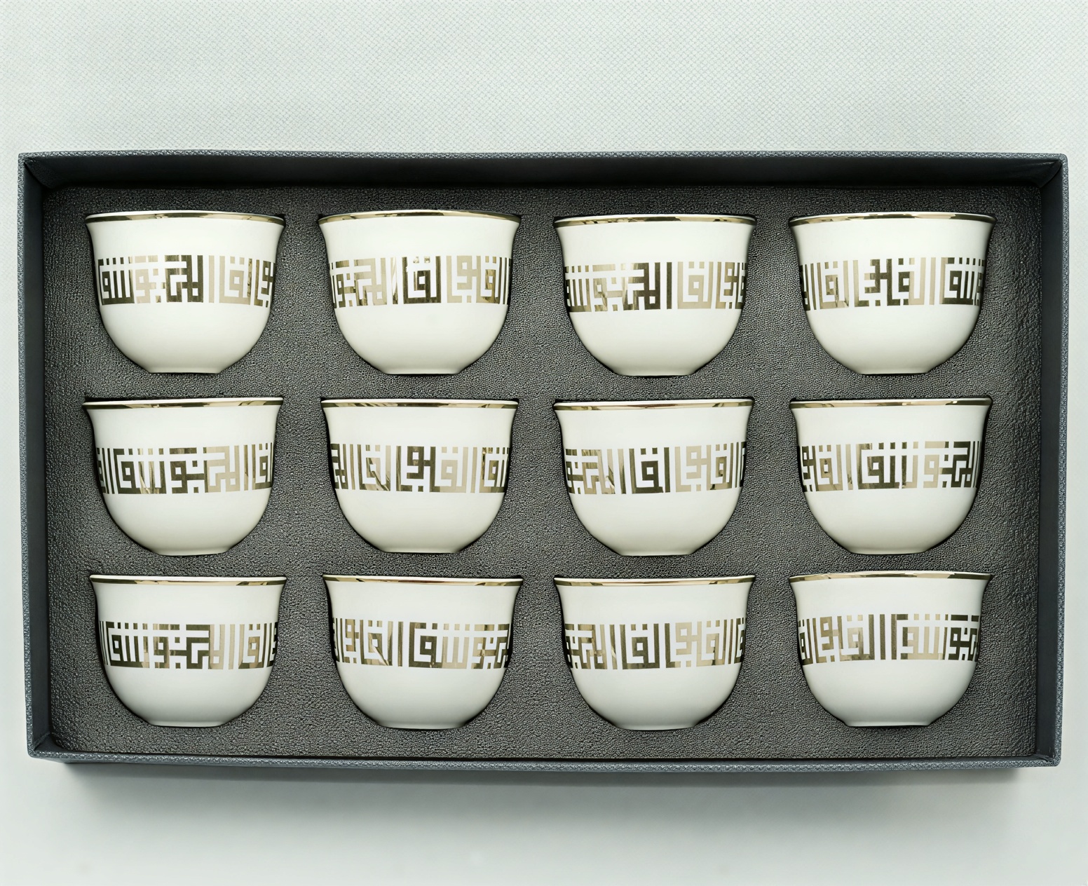 Each cup in this twelve-piece collection features a 70ml capacity, the ideal volume for traditional Arabic coffee or a strong shot of espresso. The classic silhouette is specifically crafted to fit comfortably in the palm of your hand, offering a lightweight and ergonomic feel that enhances the sipping experience. The clean, elegant lines ensure these cups integrate seamlessly into any kitchen collection, from modern minimalist setups to more traditional heritage decors.