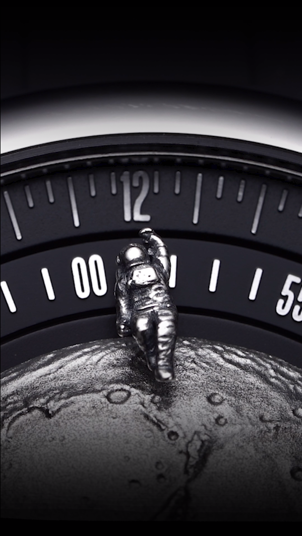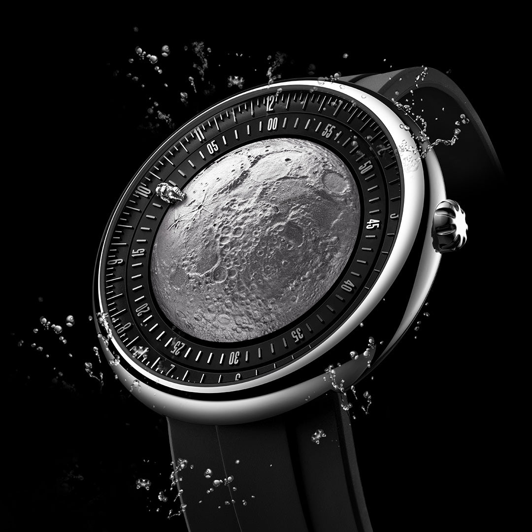 The watch is housed in a high-gloss, lightweight titanium case, chosen for its resilient strength and exceptional comfort. Titanium’s aerospace associations make it the perfect housing for a moon-inspired piece. The package is completed with a premium black fluororubber strap, known for its durability and skin-friendly properties. Whether you are a space aficionado or a collector of unique horology, the Moon Walker Edition stands as a resilient highlight of modern design, honoring the past while looking firmly toward the future of human achievement.
